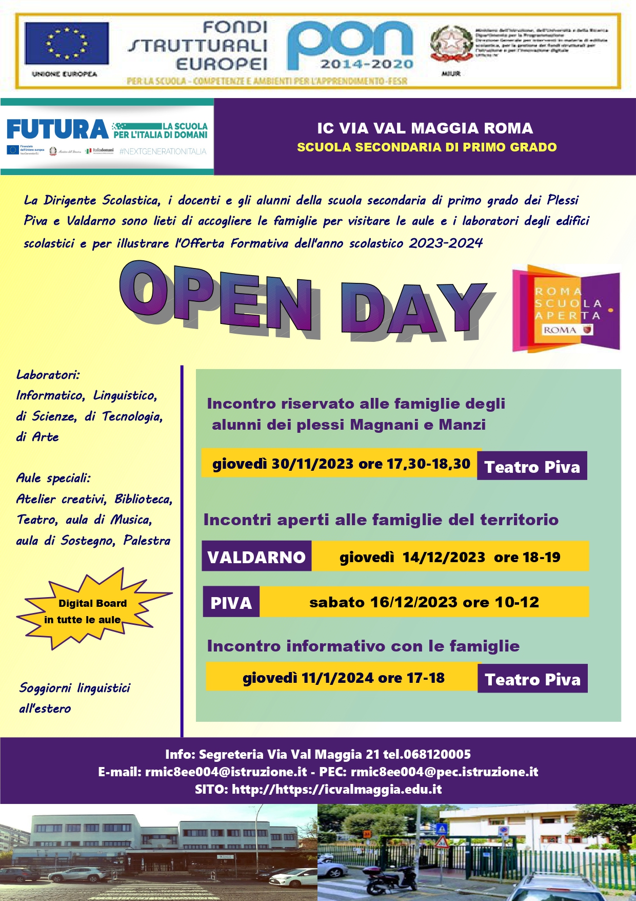 L'I.C.“VIA VAL MAGGIA” è lieta di invitare le famiglie del territorio agli Open Day
